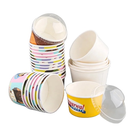 使い捨てカスタマイズ印刷アイスクリーム紙カップドーム付きPET蓋と紙蓋