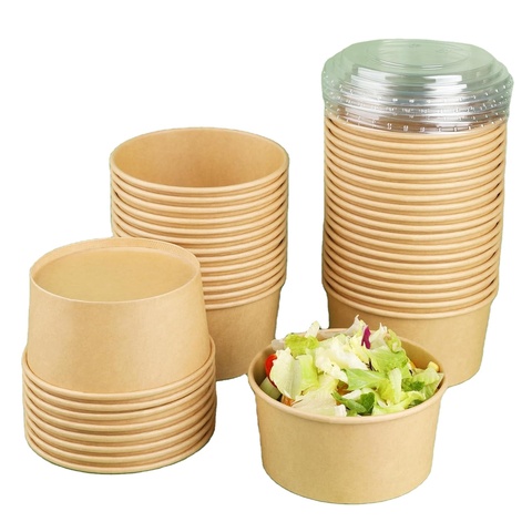 クラフト紙サラダボウル用カスタム印刷PP/PET/紙ふた付き